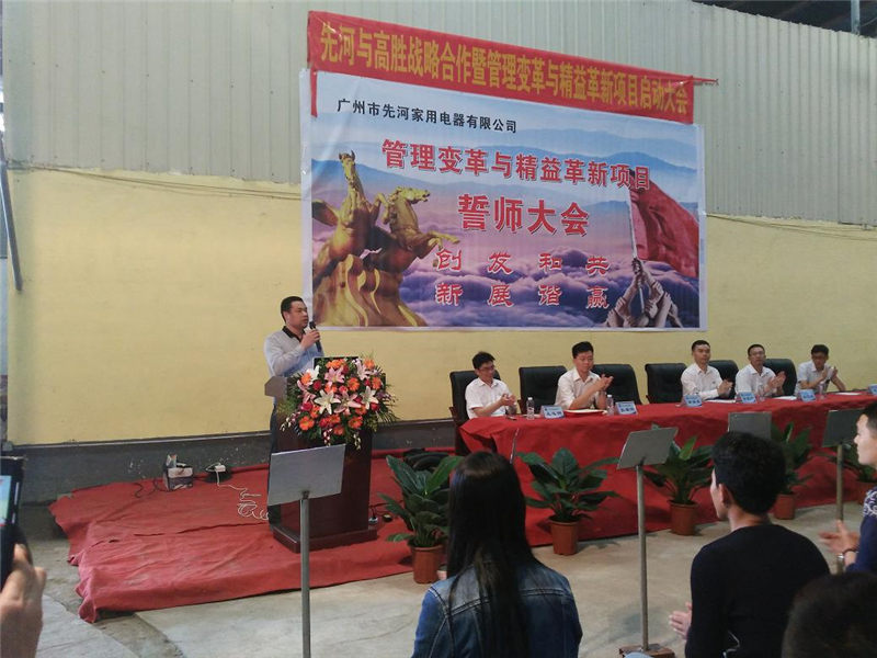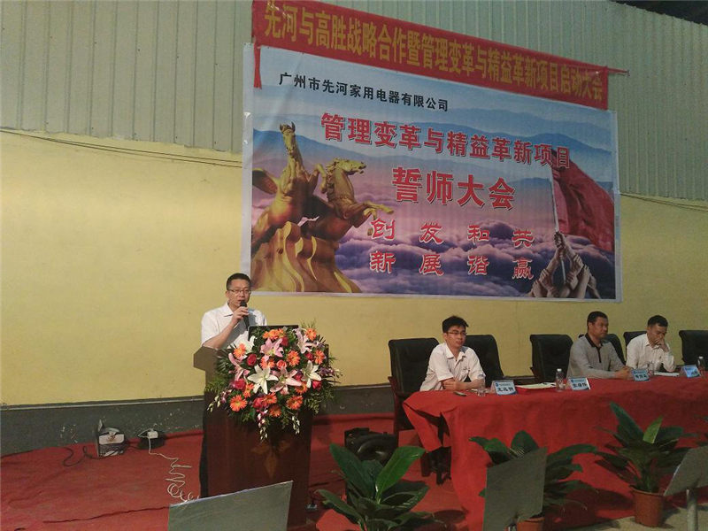2016年4月23日高勝正式入駐廣州市先河家用電器有限公司,啟動管理變革與精益革新項目,先河黃總及公司管理層代表,高勝事業(yè)一部總經(jīng)理余宜好老師、張雄偉老師、彭寶良老師、王遠明老師出席了啟動大會。