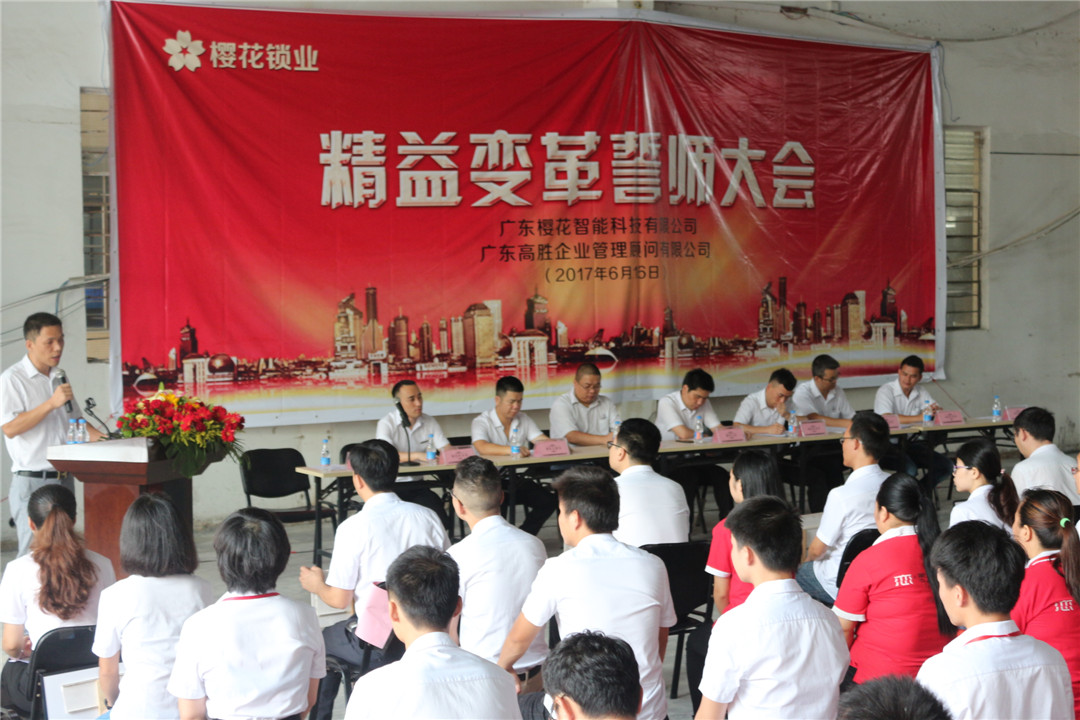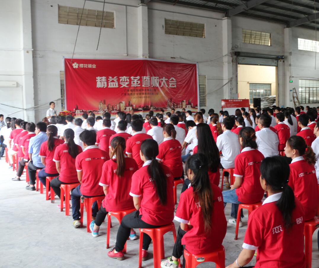 2017年6月16日,廣東櫻花智能科技有限公司舉辦盛大的精益革新項目啟動大會,櫻花總經理王星翔先生、副總經理王星鈞先生、制造中心總監(jiān)張家勝先生、營銷中心總監(jiān)朱海濤先生、高勝研究院院長廖宜尚老師、副院長余宜好老師、高勝事業(yè)七部總經理張紹裴老師、高級咨詢師林惠金老師、市場總監(jiān)歐陽小江老師、櫻花中高管理層及全體產線員工共同出席了此次盛會。