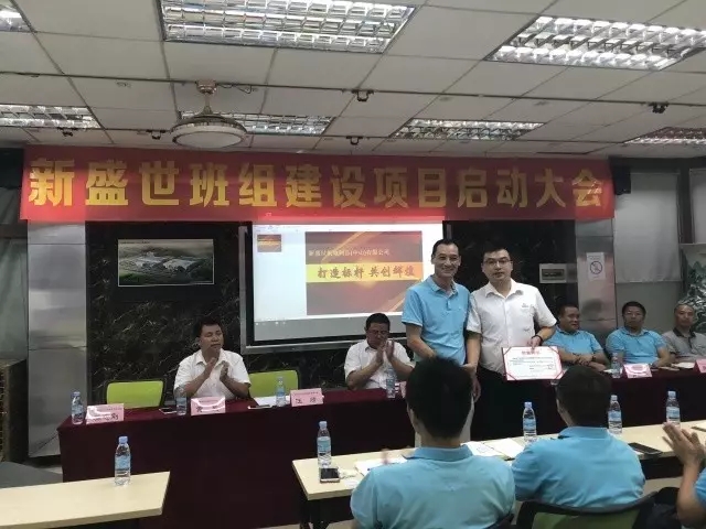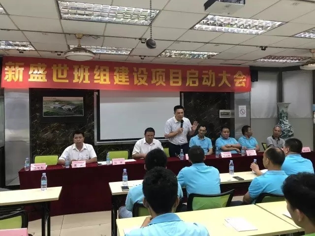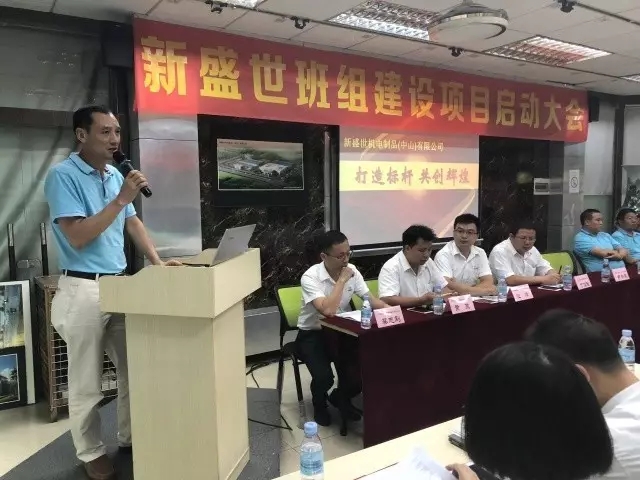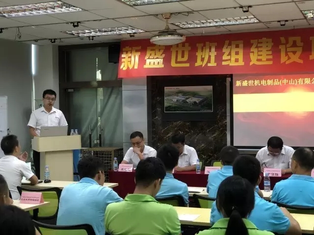 2017年10月11日下午2點,新盛世機電制品(中山)有限公司班組建設項目誓師大會隆重召開。新盛世盧齊榮董事長、谷文鋼副總、吳國豪總監(jiān)、陳吳鋒總監(jiān)、肖國平總監(jiān)、付學謙高級經(jīng)理 、廣東高勝企業(yè)管理顧問有限公司首席咨詢師丁佰勝老師、事業(yè)六部副總汪峰老師、高級咨詢師蔡志剛老師、李君老師、新盛世管理層及樣板班組小組成員共同出席了此次大會。