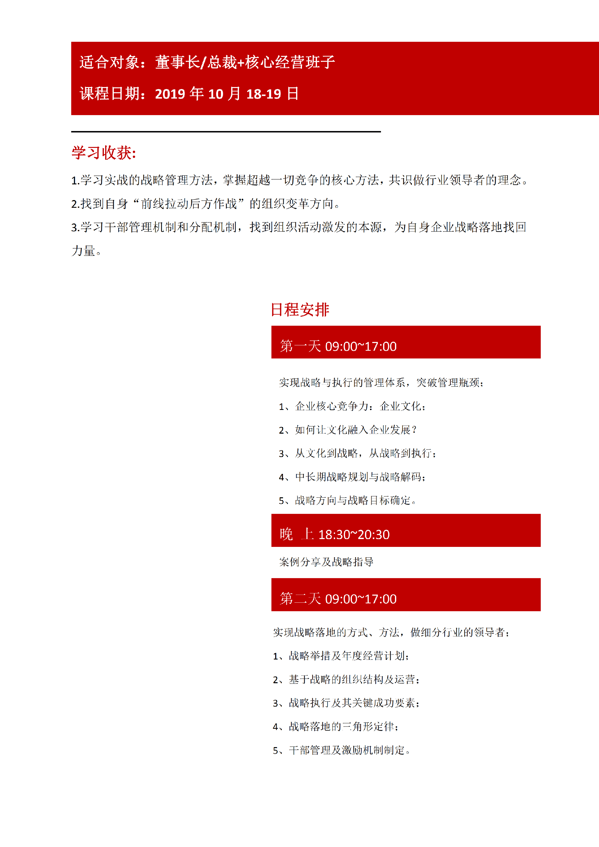 如何制定戰(zhàn)略,解讀戰(zhàn)略,執(zhí)行戰(zhàn)略?一起聆聽高勝咨詢丁老師的真知灼見,學(xué)習(xí)關(guān)于戰(zhàn)略的六大核心知識,找到企業(yè)持續(xù)有效增長的秘訣!2019年11月22-23日,由廣東高勝企業(yè)管理顧問有限公司舉辦的第三期《從戰(zhàn)略到執(zhí)行》高級研修班即將開班,報(bào)名從速!